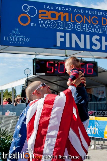 In the aftermath (let’s just assume that you all know what happened), some people joked that I was “summer biathlon world champ” (except there is summer biathlon – it’s running or biking, and shooting; I have a friend who does it). Honestly, I don’t know what I am. Time-Trial Start Bike-Run World Champ? What is a triathlon without a swim? I guess I’ll leave it to other folks to figure out. I’ve never been much for calling myself something anyway. Simon Whitfield likes to joke that his gold medal is “expired,” and if he can take that attitude, well, I think it shows a remarkable sense of what really is important. For me, it’s that photo below this one – with Quentin and the Stars & Stripes.